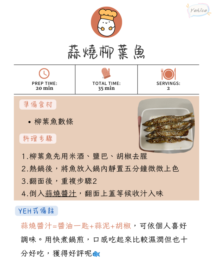 填飽肚子 【快煮鍋】蒜燒柳葉魚 by Yeh 2024 年 9 月 8 日 作者 Yeh 2024 年 9 月 8 日 0 留言 322 瀏覽次數 調整字型 重置 322 內容大綱 食材&步驟食譜 最喜歡這種沒有太多備料步驟,就可以快速上菜的料理了!上班前先把柳葉魚拿到冷藏退冰,下班就可以輕鬆上菜囉!步驟圖跟食譜都在下方啦! 食材&步驟 1.米酒、鹽巴、胡椒去腥靜置 2.熱鍋後,將魚下鍋 3.約3~5分鐘上色後,翻面 4.倒入事先準備好的蒜燒醬汁 5.約5分鐘翻面,蓋上蓋子等候收汁 6.盛盤撒上芝麻,美味上桌 食譜 快煮鍋魚料理 分享 0 FacebookTwitterPinterest Yeh 如果你也喜歡我的分享,可以透過下面方式聯絡我 上一篇文章 申請旅平險:人在國內,班機取消篇 下一篇文章 申請旅平險:JR九州停駛證明好難找! 留下您想說的 取消回覆 儲存我的名字、Email和網站於瀏覽器中,方便我下次使用。